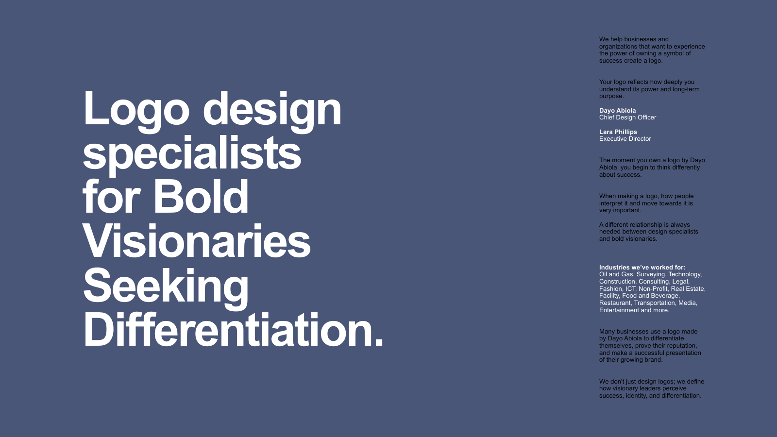 To give every single one of our clients the rarest experience ever, that makes them proud to own a logo that becomes their symbol of success.